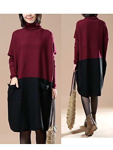 Vogstyle Donna Maglieria Lunga di Colore Hit Stile-1 Borgogna