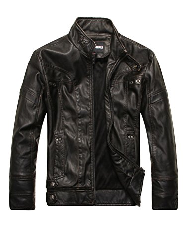 Vogstyle Uomo/Signori/Ragazzi Tendenza Cappotto Trench di Pelle Stile-4 Nero S(Fit EU 46-48)