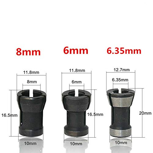 Vogueing, adattatore per mandrini a pinza, 2 pezzi, adattatore per fresatrici in lega per parti di fresatrici in bachelite (3 pezzi (8 x 6,35 x 6 mm)