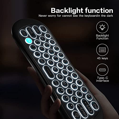 【TASTIERA WIRELESS CON RETROILLUMINAZIONE】 Entrambi i lati del telecomando Air Mouse sono dotati di retroilluminazione che trova facilmente il pulsante corretto al buio. Puoi inserire tutti i caratteri alfabetici o di punteggiatura anche se ha solo il pulsante Qwerty a 45 tasti. Premere il pulsante "Fn" per passare da lettere a caratteri. (NON COMPATIBILE CON LA MAGGIOR PARTE SMART TV)