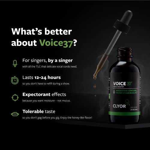 Voice Relief Drops - Vocal Cord Booster - All Natural Herbal Formula to Lubricate Soothe and Relieve Hoarseness - Enhance Singing and Speaking - 2oz - VOICE37 by Clyor