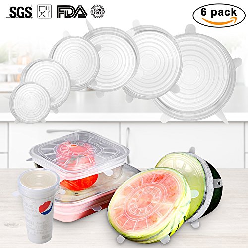 VOIMAKAS Silicone Stretch Lids, 6pcs- Pack Coperchio Riutilizzabile per Alimenti, Durevole e scalabile, per Varie Misure di Tazze d'Acqua, coperchi per Ciotole