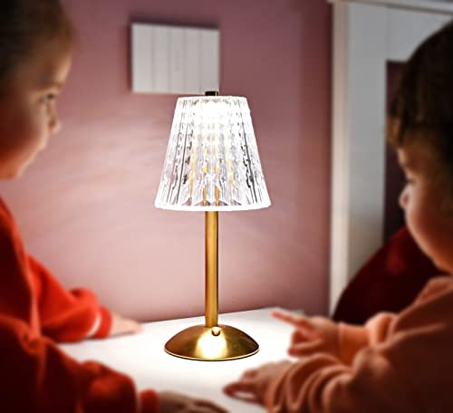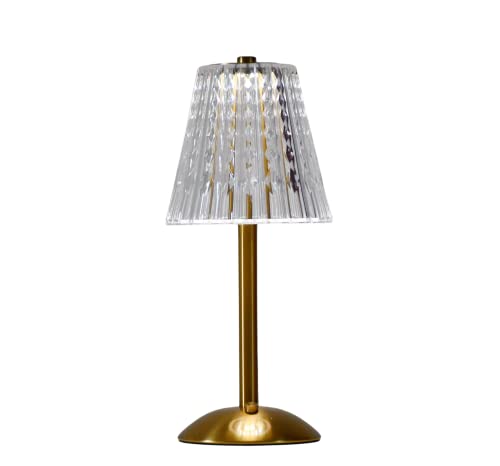 VOKOT QLED14 Lampada da tavolo touch senza fili ricaricabile dimmerabile,effetto cristallo in metallo e acrilico, abatjour per camera comodino bar ristoranti 3 modalità caldo naturale freddo