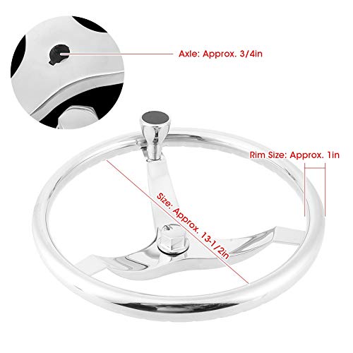 Volante per barca, sostituzione del volante in acciaio inossidabile 13 1/2 in 25 gradi 3 razze, specchio lucidato 5/8 in dado e manopola girevole Forniture per barca, per accessori per barca