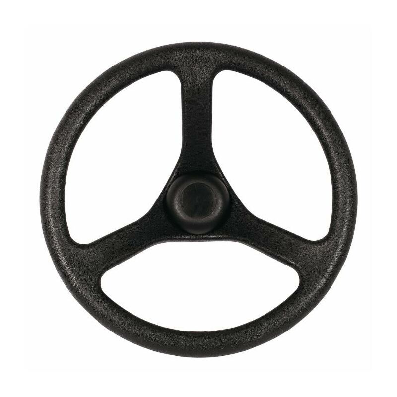 Volante in plastica senza pomello con cono Danfoss. Modello di diametro 320 mm e conicità C6 . Dati principali Marca: Seat Industries Informazioni d'uso Settori di applicazione: agricoltura Misure Quota A: 320 Quota B: 100 Struttura Conicità: C/6