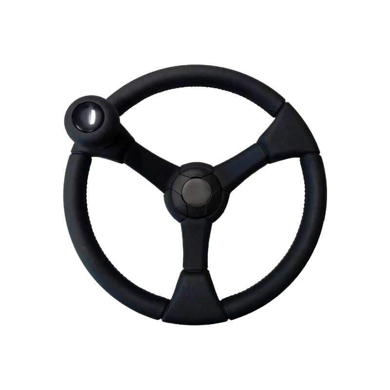 Volante in poliuretano effetto Soft Touch con diametro 350 mm, cono Danfoss 1 e pomello . Dati principali Marca: Seat Industries Informazioni d'uso Settori di applicazione: agricoltura Misure Quota A: 350 Quota B: 104 Struttura Conicità: C/6