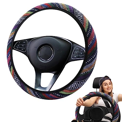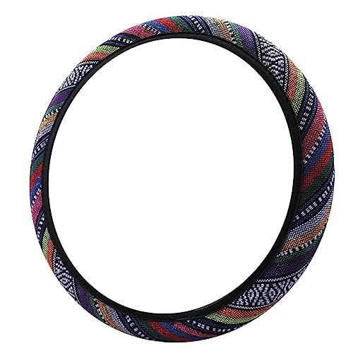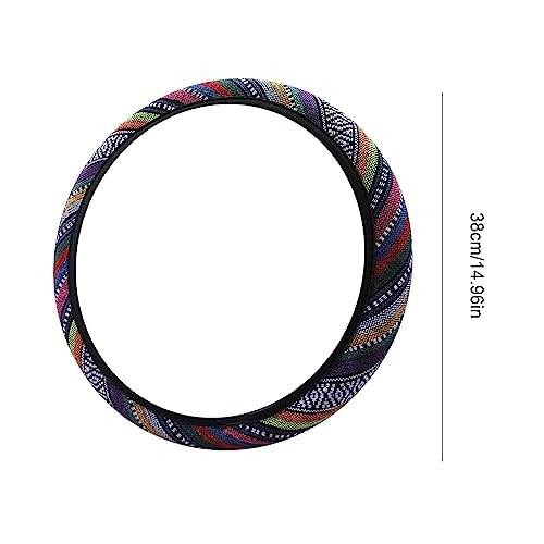 Lino colorato: il coprivolante per auto è realizzato in filo di lino colorato che è morbido e resistente. Il design della linea colore stile etnico esprime la tua personalità e il tuo stile. La tessitura filati colorati migliora l'aderenza e la stabilità.