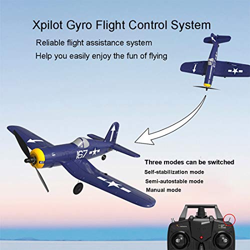 VOLANTEXRC F4U - Aereo RC, portata aereo 400 mm, 2,4 GHz, radiocomandato con sistema Xpilot giroscopio per principianti RTF