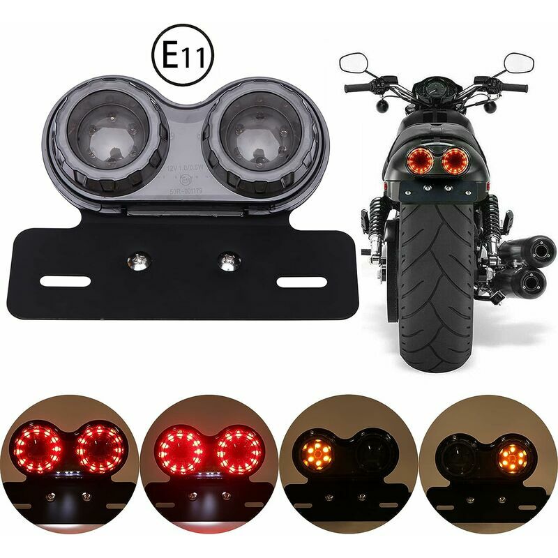 Luci posteriori a LED per motociclette Indicatori di direzione per motociclette Caratteristica: - Progettato per la maggior parte delle motociclette personalizzate, montaggio universale. - Può essere utilizzato come luce di marcia diurna e luce di stop o come indicatore di direzione. - I LED super luminosi ad alta potenza offrono la massima visibilità e sicurezza. - Completo di portatarga, robusto e resistente. - Migliora la tua moto con uno stile unico. Specifiche: Condizione: 100% nuovo di zecca. Materiale: LED + staffa metallica + lente PC Tensione: DC 12V Numero di LED: 40 LED (24*ruota, 12*giallo, 4*bianco) Distanza tra gli slot di montaggio regolabile Vite di installazione: 6mm/M6