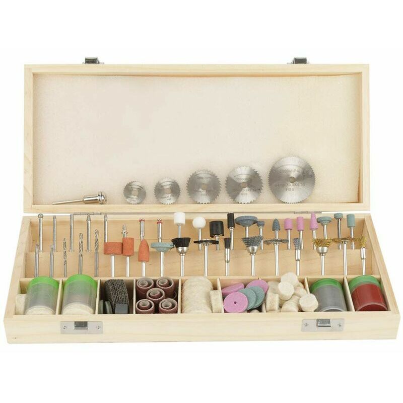 242 pezzi - Ci sono 242 pezzi per fornire vari accessori per utensili rotanti con diverse funzioni per le diverse esigenze. 【Universale】I codoli di diametro 1/8, compatibili con la maggior parte degli utensili rotanti . 【Dogana】 Utilizzato principalmente per la molatura, l'incisione, il taglio, la lucidatura, la perforazione, ecc. 【Con scatola portaoggetti】 Vieni con una scatola portaoggetti in legno, che mantiene tutte le parti in ordine Specifiche: Quantità: 242 pezzi Diametro gambo: 3 mm / 1/8 pollici Lunghezza coda: ca. 35 mm / 1,38 pollici Peso: ca. 667 g / 23,5 z Elenco dei pacchetti: 1 x pasta abrasiva rossa 36 x nero ruota in resina 72 x carta vetrata rossa 10 x ruota in rete nera 50 x ruota per lucidare la lana < p>2 x ruota in gomma p> 12 dischi da taglio 5 lame per sega HSS 3 aste di collegamento 1 aste autofilettanti < p>5 aghi per molatura 5 punte per trapano 2 bacchette per sabbia 9 spazzole metalliche 15 testine per molatura 5 teste di macinazione in lana 1 x pietra ad