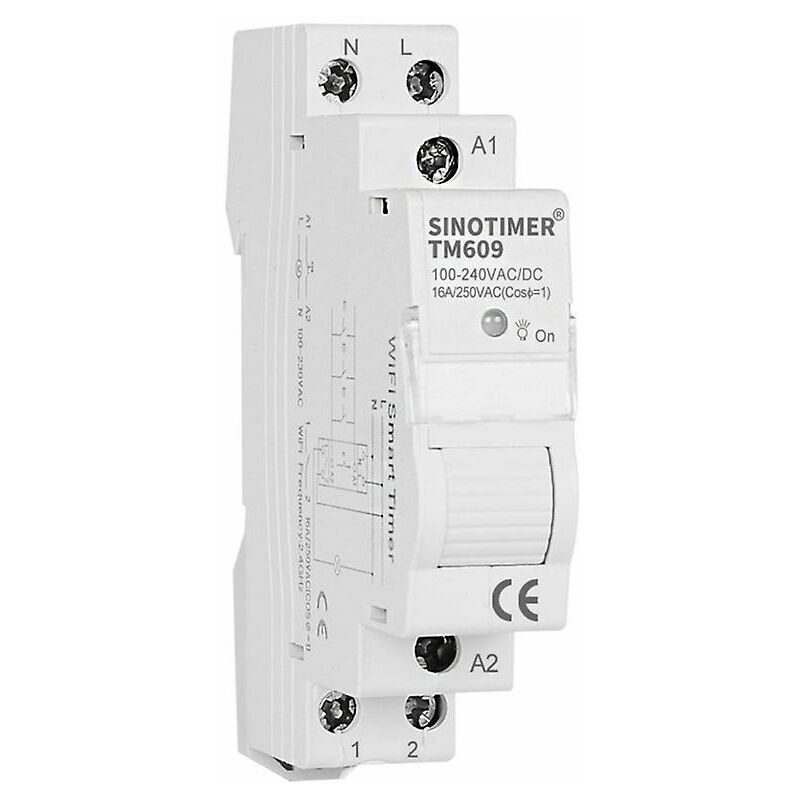 16A Electric Tuya APP Telecomando Wireless Smart Switch WiFi Timer Countdown Time Switch Breaker Lavoro fai da te con Alexa -Google Home Descrizioni del prodotto: 1. Telecomando ON/OFF tramite Tuya APP o Smart Life APP in qualsiasi momento da qualsiasi luogo 2. Il modello TM609 è max. 16 A 3. Orario di programmazione/timer, 30 tipi di modelli di timer 4. Tensione relativa: 100-240 V CA/CC 50/60 Hz 5. Corrente nominale: 16 A 6 .Dimensioni: TM609 16A 70.5*86.5*17.5mm 7. Montaggio: 35mm Din Rail 8. Configurazione contatti: 1NO (SPST-NO) 9. Frequenza Wifi: 2.4GHz 10. Intervallo di temperatura ambiente: -10C-+60C 11. Può impostare 100 programmi On/Off un giorno o alla settimana. 12. Conto alla rovescia, da 1 min a 23 ore 59 min. 13. Se il prodotto è disconnesso dalla rete, il timer manterrà tutti i programmi configurati dall'app mobile e funzionerà in base ai programmi impostati. 14. Con la funzione di memoria, quando il contatto del prodotto è nello stato chiuso, dopo l'interruzione di