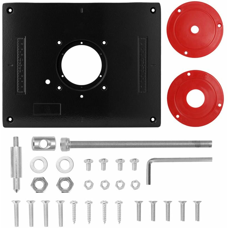 Incluso kit router fai da te per aggiungere il funzione di regolazione dell'altezza del router (è necessario praticare da soli il foro nella base del router). Piastra di inserimento multifunzionale con anelli, adatta per realizzare la propria tavola di fresatura per la lavorazione del legno di alta precisione. Caratteristiche: Piastra di inserimento multifunzionale con anelli, adatta per realizzare la propria tavola di fresatura per la lavorazione del legno di alta precisione.Realizzato in lega di alluminio ad alta resistenza per un uso duraturo.Il comodo anello del foro centrale utilizzato per il router è allineato in modo che sia centrato nel foro della punta. È facile da usare, risparmiando fatica e lavoro, e facile da maneggiare ed estendere l'uso della macchina da taglio allo stesso tempo. La lavorazione CNC ad alta precisione rende la qualità perfetta. Caratteristiche: Materiale: lega di alluminio br/> Colore: rosso, nero (opzionale) Dimensioni articolo: 300 * 235 * 9 mm/11,8 *