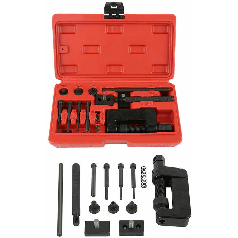 Descrizione: ● Questo kit include 3 perni (2,2 mm / 2,9 mm / 3,8 mm) per adattarsi a una varietà di catene. ● Questo strumento romperà e rivetterà le catene di trasmissione posteriori 420-630 . ● Strumento potente e preciso per rimuovere e installare i perni della catena in modo rapido e preciso ● Resistenza e durata superiori, facile riparazione delle maglie strette dopo il rimontaggio ● Strumento per catena piccolo e compatto, facile da trasportare e utilizzare ● Con la corretta rotazione della vite del bullone, evitare danni durante la rimozione < p>Caratteristiche: ● Coda: 8,4 * 4,9 * 2,1 pollici /21,5 * 12,5 * 5,5 cm< br/>● Peso: 840 G ● Manico: rosso e nero Confezione inclusa: ● 1 confezione di kit tagliacatena per bicicletta