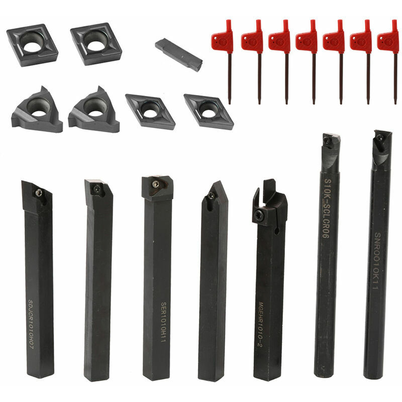 Utensili di tornitura multifunzionali di diversi tipi possono soddisfare le diverse esigenze. Caratteristiche: Realizzato in materiale pregiato con una buona durata. Lo strumento ad alta resistenza è solido e ha anche una lunga durata. Può soddisfare varie esigenze. Migliora l'efficienza del lavoro.Semplice e facile e comodo da usare Specifiche: Modello di staffa: SDJCR1010H07, SER1010H11, MGEHR1010-2, S10k-SCLCR06, SNROO10K11, SCLCR1010H06, SDNCN1010H07 Peso della confezione: 757 g / 26, 70 once Dimensioni della confezione: 220 * 150 * 40 mm * 58,61 nella confezione elenco: 7 * titolari 7 * inserti 7 * chiave