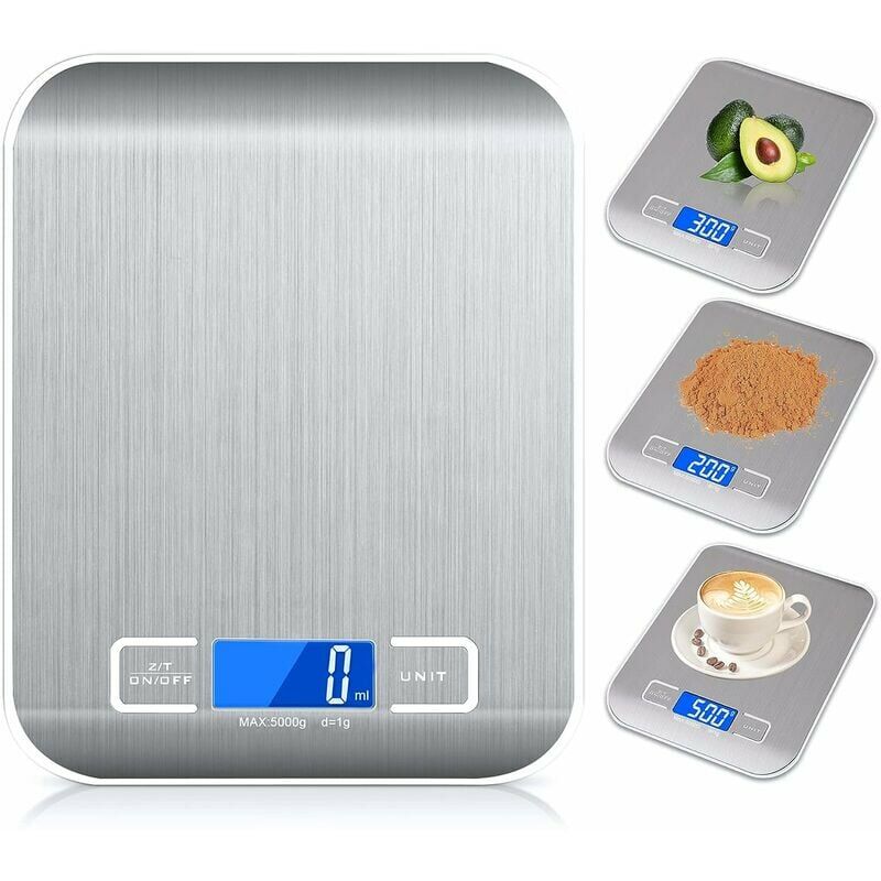 DESIGN ELEGANTE - Con un'altezza di 1,4 cm, questa bilancia da cucina ultra sottile facilita lo stoccaggio. È anche conveniente rimuoverlo. La piattaforma in acciaio inossidabile da 18 cm x 14 cm aggiunge un'estetica moderna alla tua cucina fornendo allo stesso tempo una superficie di misurazione resistente e facile da pulire. CAPACITÀ MASSIMA A 5 KG - La nostra bilancia da cucina digitale offre una capacità di peso di 11 libbre / 5 kg, divisione 0,1 once / 1 g. Riceverai sempre la giusta quantità di cibo, gioielli, medicine, liquidi e spezie per tutte le tue ricette. Perfetto per cucinare, cuocere al forno, pesare piccoli pacchetti, ecc. FACILE DA PULIRE - Sono anche resistenti alle macchie e agli odori. La bilancia digitale per alimenti realizzata in acciaio inossidabile di alta qualità, facile da pulire. Fornisce funzione antipolvere, anticorrosiva e idrofobica. Il set è robusto e durevole, resistente ai graffi per una facile pulizia e manutenzione a lungo termine, basta pulirlo