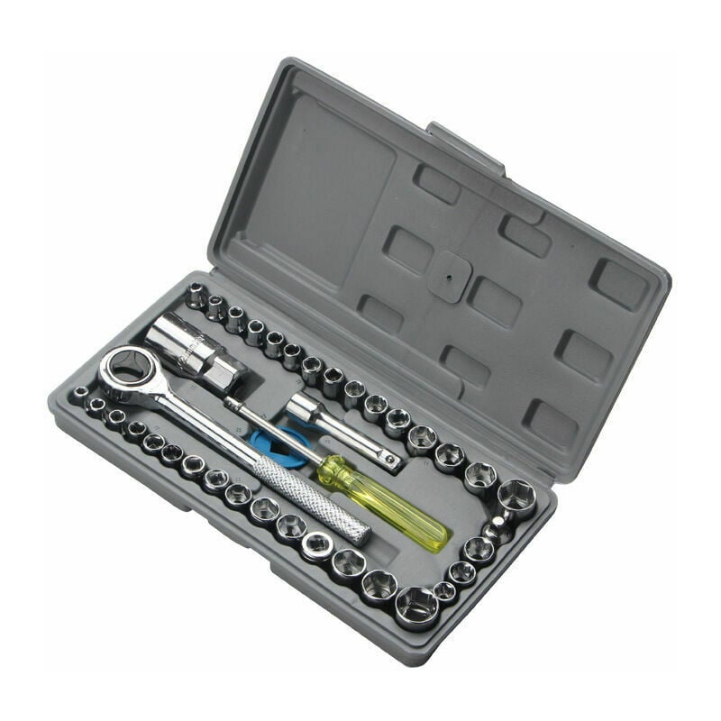 Descrivi 【Finitura cromata anticorrosione】Tutti gli strumenti sono dotati di una tripla finitura cromata completamente lucidata e trattata termicamente per proteggere i tuoi strumenti dalla corrosione. Non c'è bisogno di preoccuparsi di lasciare i tuoi strumenti da soli fuori o sotto la pioggia poiché i nostri strumenti sono antiruggine. 【Set di strumenti da 40 pezzi】 Gli strumenti contengono tutti gli strumenti più necessari e necessari di cui tutti hanno bisogno nella loro vita quotidiana. Compreso set di prese, cricchetto, cacciavite, ecc. 【Conservazione stabile permanente】Questi strumenti sono confezionati in una robusta scatola di plastica, ognuno è ben organizzato e non si allenta. Dimensioni: 24 cm x 12 cm x 4 cm (L x P x A). Peso: 1 kg. 【ADATTO A QUALSIASI SITUAZIONE】Il nostro kit è lo starter kit perfetto da tenere a casa o da riporre nel veicolo in caso di emergenza. Ha tutte le attrezzature necessarie per la riparazione dell'auto e la manutenzione della casa. Il pacchetto