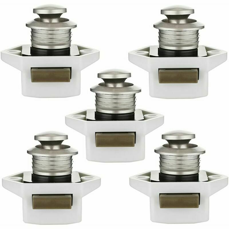 20 mm 5 pulsanti di bloccaggio, prodotto sicuro. Anti-shake, non c'è bisogno di preoccuparsi di aprire il camper durante la guida. Nessuna chiave richiesta: premi il pulsante per bloccare, premi di nuovo per aprire. Facile da installare: viene fornito con tappo a vite e serratura di ricambio. Può essere utilizzato in ante di armadi, ante di armadi, camper, roulotte, cassetti, camper, mobili, ecc. Il pulsante richiede un foro con un diametro di 20 mm. Adatto per ante/cassetti di spessore 15-27 mm. Distanza di fissaggio: 37 mm Fornitura: 5 pezzi lucky meet