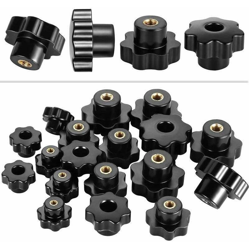 Durable Star Knob: questi pomelli a forma di stella sono realizzati in plastica e ottone, non solo robusti da usare, ma non conduttivi e leggeri. Fornisce una presa comoda. La superficie è accuratamente lucidata, liscia e priva di sbavature e non farà male al palmo della mano quando la tieni.a forma di stella con filettatura passante, incluse 3 misure: M4, M6, M8. Sono ottimi accessori per sostituire le maniglie delle manopole vecchie o rotte., Design a forma di stella: le manopole a forma di stella consentono una facile installazione e smontaggio, risparmiando tempo ed evitando il fastidio. La sua filettatura interna in ottone riduce notevolmente lo slittamento del bullone compatibile.,Ampia applicazione: questi pomelli a forma di stella funzionano bene su armadi, cassetti, porte, armadietti, cassette degli attrezzi, elettrodomestici e altri mobili o attrezzature che richiedono frequenti regolazioni. Si adatta perfettamente alle diverse applicazioni. Ampiamente utilizzate in tutti i