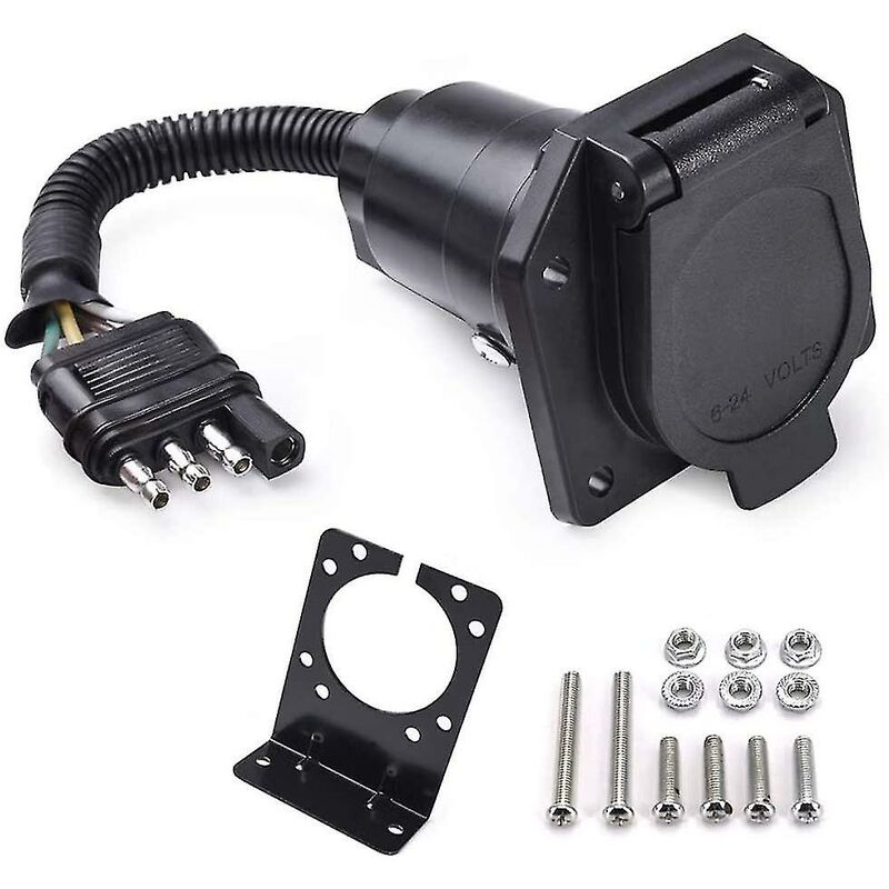 Semplifica il cablaggio: plug and play, converti la spina piatta a 4 pin per auto in una spina circolare a 7 pin per rimorchio, sincronizza le luci di segnalazione del rimorchio e personalizza il sistema di connessione per collegare il rimorchio. Plug and play è molto conveniente, il che risolve il problema di ogni rinnovo. Problema di cablaggio. Lavorazione di alta qualità - Come nucleo viene utilizzato rame puro, che migliora notevolmente la conduttività. Utilizzare un guscio in PVC di alta qualità, resistente all'usura, alla corrosione, impermeabile e di lunga durata. non è in uso Installazione semplice dotata di staffe di montaggio, viti e dadi, è sufficiente trovare una posizione adatta per installare e serrare i dadi per un'installazione corretta Ampia gamma di applicazioni - adatto a tutti i trattori che non richiedono freni elettrici, compresi rimorchi, semirimorchi, camper, ecc. Il tuo sistema di cablaggio del rimorchio sincrono originale è troppo complicato? Non