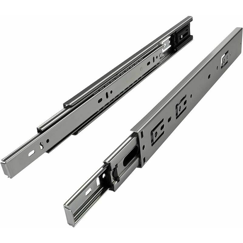 1 coppia di guide KV2-35-H45-L250-SE 250 mm ad estrazione totale con chiusura automatica Materiale: acciaio / Gabbia a sfera / Con meccanismo di chiusura automatica (il cassetto può rientrare automaticamente sopra ultimi 30 mm) / Con funzione di rilascio scorrevole (cassetto rimosso) / Capacità di carico: 35 kg Dimensioni: Lunghezza nominale: 250 mm / Supporto premium: 45 mm / Larghezza di montaggio: 12,7 mm / Per uso tecnico motivi, questa guida non può essere estesa di 225 mm! Applicazioni: Utilizzato per cassetti di diverse dimensioni in mobili, produzione di macchinari, veicoli, ecc. Fornitura: 1 coppia ( 2 pezzi)