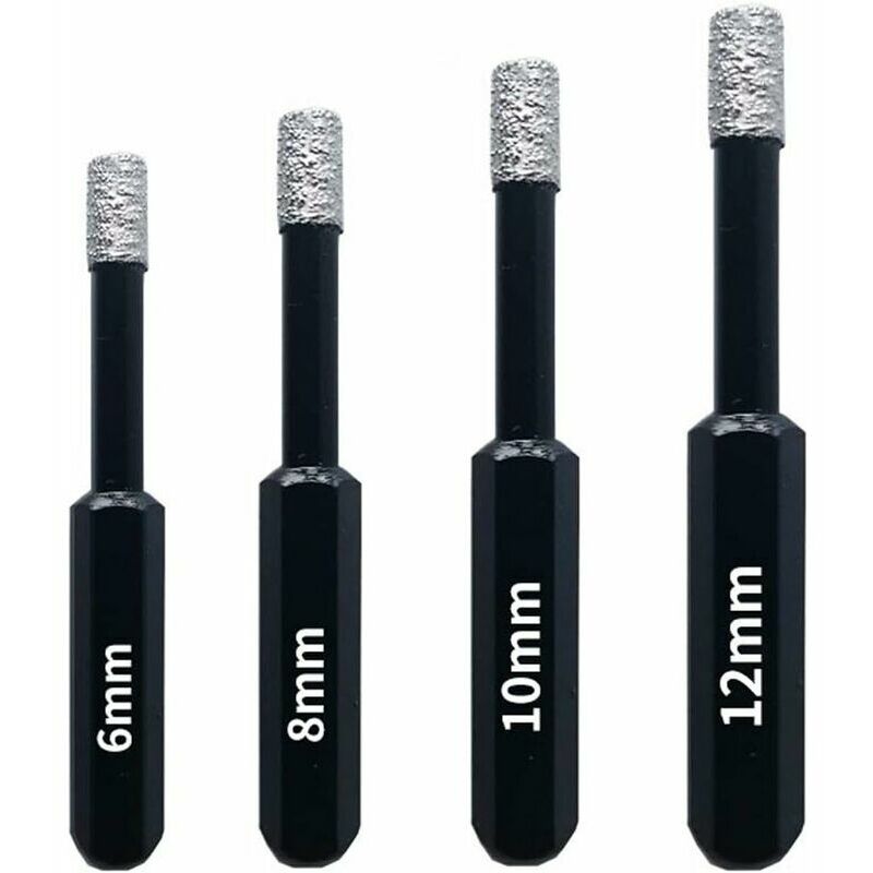 Taglia:4pz Punte diamantate Punte diamantate ideali per gres porcellanato, granito, marmo, pietra, muratura, mattoni, ecc. Caratteristica: Materiale: acciaio inossidabile e rivestimento diamantato;