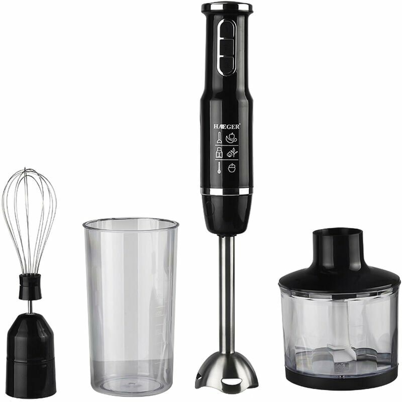 Il frullatore a immersione multifunzionale 4 in 1 offre una potenza elevata di 750 W e 3 velocità regolabili per usi diversi, la vita diventa più sana e più semplice! 4- Frullatore a immersione in-1: Il kit include bastoncino, becher, rame per alimenti e frusta per uova, realizzato in materiale ABS per uso alimentare privo di BPA, sicuro al 100% per la preparazione di salse. 750 W ad alta potenza: il frullatore presenta una potenza reale di 750 W e una lama a 4 foglie, con 3 livelli di velocità regolabili per esigenze diverse, comodo da usare. Facile da usare: Il design staccabile lo rende facile da pulire con acqua di rubinetto dopo l'uso. Si prega di notare che il motore non deve essere immerso in acqua. Applicazione versatile: Questo frullatore a immersione può essere sostituito con un frullatore e una frusta per preparare frullati, zuppe o pappe, eccetera. Il frullatore a immersione multifunzionale rende la vita più sana. Regalo meraviglioso: Ottimo regalo per mamma, famiglia