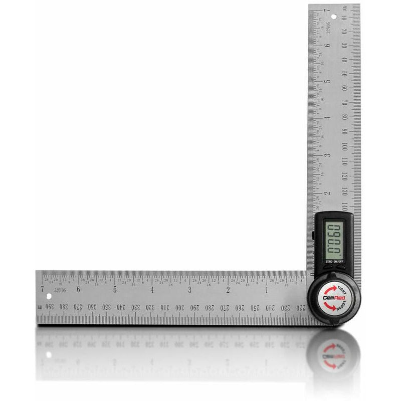 Tecnologia di misurazione precisa - La combinazione di righello e goniometro è conveniente per misurare angoli interni ed esterni. 【Display digitale】Facile da leggere. 【Righello durevole】Bene Il righello in acciaio inossidabile realizzato in acciaio inossidabile e le misurazioni incise al laser forniscono letture chiare e anni di utilizzo. 【Alta precisione】 La precisione di questo goniometro è di ± 0, 3 gradi. È una buona scelta per la maggior parte dei progetti come la lavorazione del legno, lo stampaggio a corona e l'uso quotidiano. Risoluzione: 0,1°< /p> Precisione di misurazione: ±0,3°.< /p> Dimensioni del prodotto: 218*20*35mm Intervallo di misurazione: 0°~999,9°< /p> Temperatura di esercizio: 0°C~+50°C Umidità di lavoro: ≤85% RH Descrizione delle caratteristiche 1. Con funzioni di misurazione dell'angolo e misurazione della lunghezza. 2. Schermo elettronico con display digitale ad alta definizione, lettura precisa e chiara. 3. Scale metriche e imperiali 4. Corpo del righello in