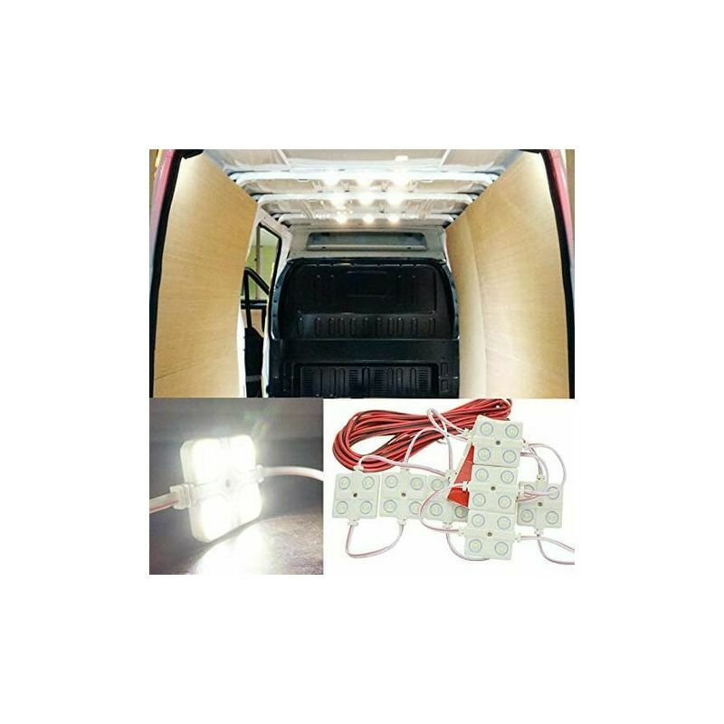Luci interne per auto ultra luminose - : questo kit include 10 moduli LED per un totale di 40 LED che sono due volte più luminosi dei chip LED standard. Per un'illuminazione completa in tutto il furgone. 【Risparmio energetico】: lunga durata, basso consumo energetico. Super luminoso. Ideale come luce da lavoro o per trovare quello che stai cercando. 【Facile da installare】: installazione semplice. Cinque metri di filo consentono di personalizzare l'installazione. Installa il kit dove vuoi con l'adesivo sul retro. bauli per auto.