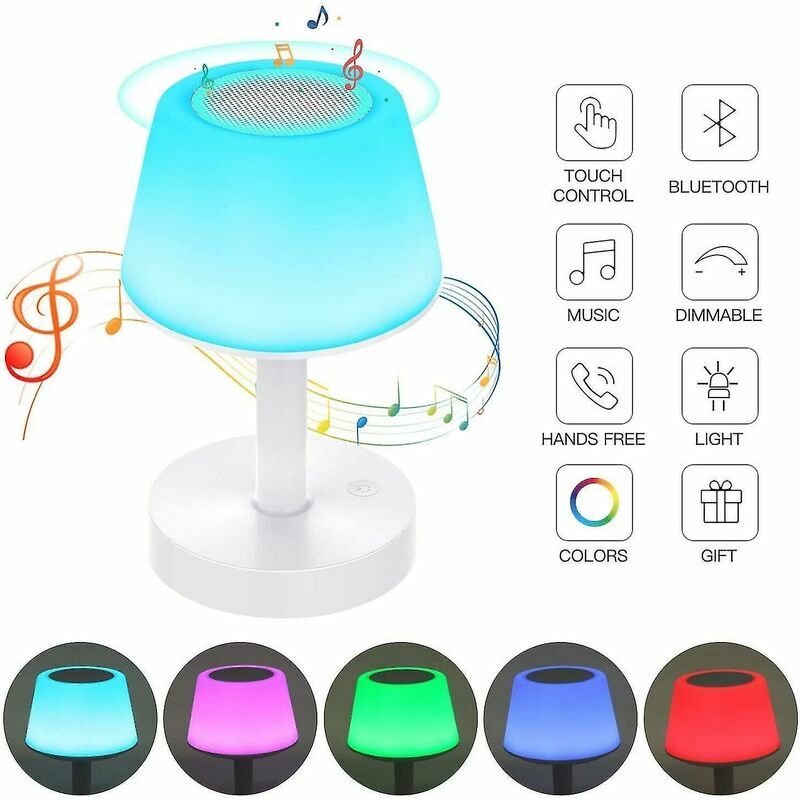 Multifunzione Questa lampada da tavolo a LED è una combinazione di altoparlante Bluetooth V4.2, lettore musicale wireless, chiamata in vivavoce, luce notturna per bambini tutto in uno, adatta per camera da letto, yoga, casa, ecc. lettura, studio e tuo figlio . 3 modalità di luminosità e 6 LED multicolore La lampada da comodino touch ha 3 livelli di modalità luce bianca calda (luminosità bassa, media e alta). Non ti sentirai a disagio o abbagliato quando accendi la lampada di notte. Goditi la stanza calma e calda. 6 diversi bellissimi colori, rosso, blu scuro, rosa, verde, azzurro e colore dinamico che cambierà in base al volume della musica. Altoparlante Bluetooth portatile e ricarica USB L'ultima tecnologia Bluetooth V4.2, compatibile con tutti i dispositivi Bluetooth (telefono, tablet, lettore MP3, ecc.) fino a 10 metri. Lampada portatile ricaricabile con batteria integrata, che consente di utilizzarla in modalità wireless o tramite cavo USB collegato al PC o laptop. Controllo touch