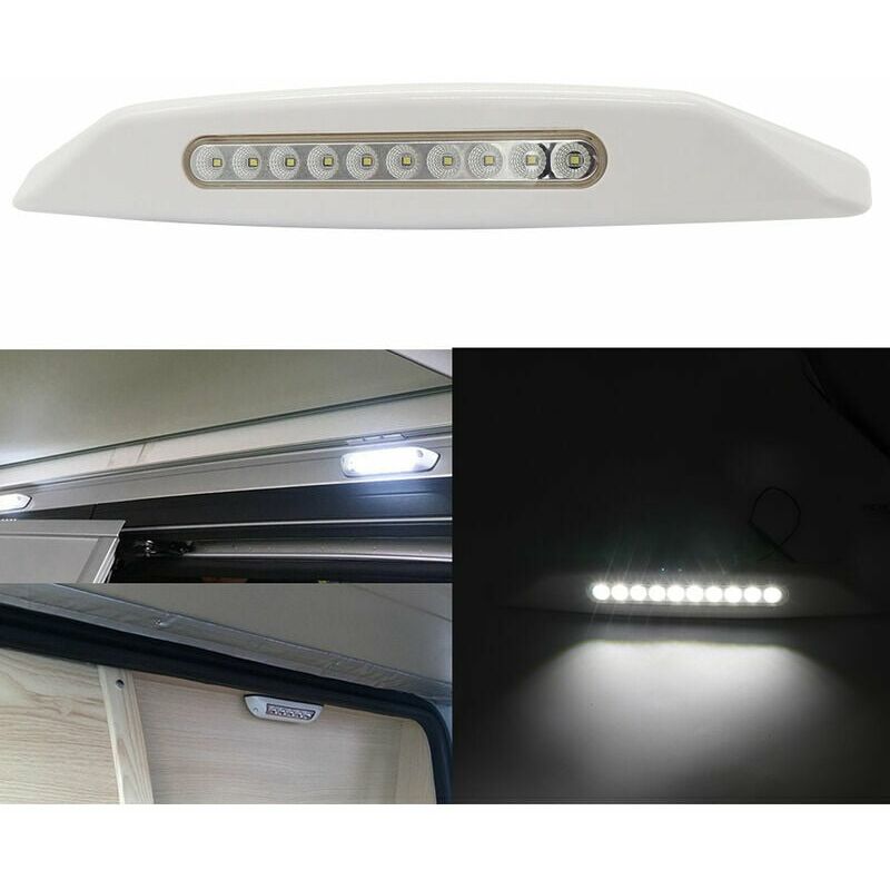 Caratteristiche: 10 LED, abbastanza luminosi da soddisfare le tue diverse esigenze. È impermeabile, quindi non devi preoccuparti che smetta di funzionare sotto la pioggia. Copri la lente trasparente, assicurati di illuminare il terreno senza irritare gli occhi. La custodia è realizzata in materiale di alta qualità, senza radiazioni e con elevata resistenza alle alte temperature. Cavo di colore diverso per una più facile installazione, collegamento rosso al positivo, collegamento bianco al negativo. Adatto per smotorhome, camper, roulotte, camper, roulotte, rimorchi, ecc. Specifica: Tensione: DC 12V Materiale: plastica Colore luce: bianco Potenza: 3 W Lumen: 354±20 lumen Dimensioni articolo: 37,4 * 5,2 * 4,8 cm / 14,72 * 2,05 * 1,89 pollici Dimensioni confezione: 38 * 6 * 6 cm / 14,96 * 2,36 * 2,36 pollici Peso della confezione: 204 g Elenco dei pacchetti: 1 * Lampada a baldacchino a LED