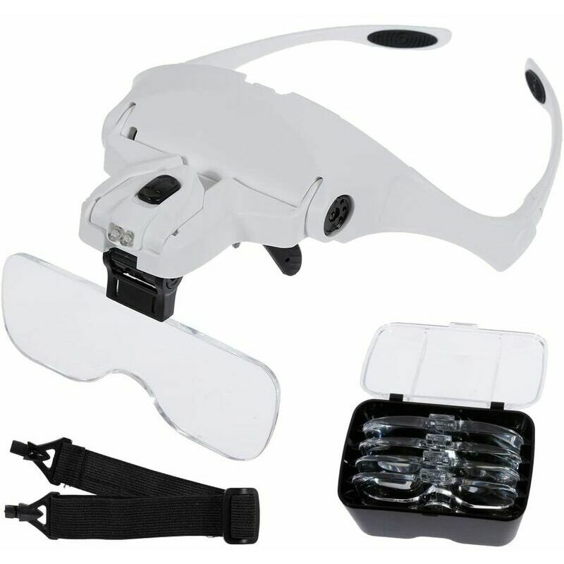 è perché il peso della lente e della montatura, led e altro elemento, questi occhiali sono sicuramente non molto adatte per leggere a lungo, ma sono molto adatte per lavori a breve termine < p>DESIGN PIÙ COMPLETO: le lenti di ingrandimento stesse sono realizzate in plastica, questo è un vantaggio per il peso quindi sono l luce a proposito, le lenti da 5 pezzi vengono
