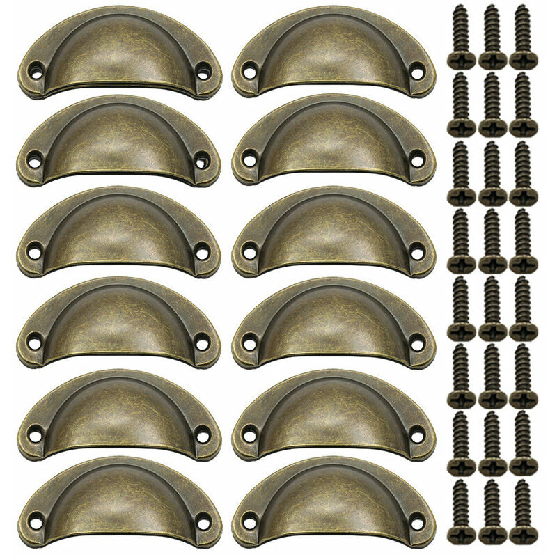 Materiale del guscio della maniglia: metallo termoadesivo, con viti. Dimensioni vintage del guscio della maniglia: ca. 82 x 36 mm (L x P), la dimensione delle maniglie è perfetta per aggiungere un tocco vintage ai mobili. Facile da installare: maniglie retrò classiche, semplici e pratiche, facile da installare, è abbastanza facile per te installarli con un piccolo strumento a casa. Decorazione perfetta: pomello del cassetto vintage per decorare il cassetto. Perfetto per il tuo armadio, cassetto, armadietto, cassettiera, credenza, ecc. Il pacchetto include: 12 maniglie, 24 viti. Caratteristiche: 1. Le maniglie delle porte a forma di semicerchio tirano maniglie molto semplici,L'aspetto è molto bello e facile da installare. 2.39;