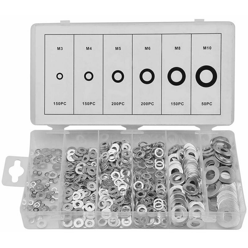 Descrizione: la rondella è una sottile piastra a forma di disco con un foro al centro che viene normalmente utilizzata per distribuire il carico di un elemento di fissaggio filettato, come una vite o un dado. Altri usi sono come distanziatore, cuscinetto antiusura, indicatore di precarico Le rondelle sono importanti anche per prevenire la corrosione galvanica, in particolare per isolare le viti in acciaio dalle superfici in alluminio.Specifiche: Materiale: acciaio A3 Tipo: piastra rondella Colore: argento Dimensioni e quantità: M3*150 pezzi M4*150 pezzi M5*200 pezzi M6*200 pezzi M8 * 150 pezzi M10 * 50 pezzi Peso: 446 g (circa) Il pacchetto include: 900 x rondelle