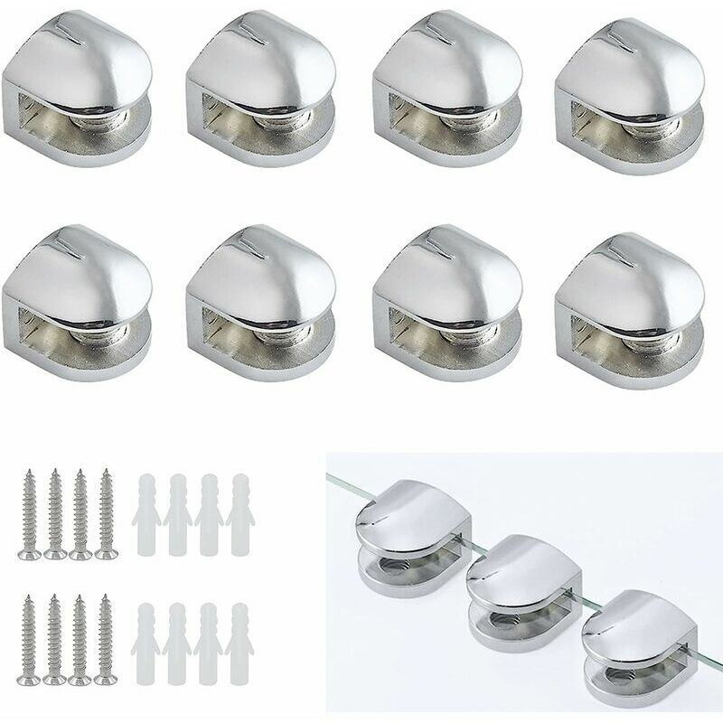 Morsetti per vetro - La confezione include 8 pezzi di morsetti per vetro, con viti di fissaggio e tappi in gomma di espansione, che possono aiutarti a fissare saldamente il vetro. È semplice e pratico ed è un oggetto indispensabile nella tua vita. 【Materiale di alta qualità】 Il portabicchiere è realizzato in lega di zinco, materiali di alta qualità, galvanica brillante, superficie liscia, alta qualità e bello, antiruggine e resistente. 【Facile da installare】 Il morsetto per vetro in lega di zinco è molto stabile e sono presenti viti con intaglio per fissare la lastra di vetro inserita in posizione. Queste viti hanno una superficie in silicone per evitare graffi sul vetro. La base è solida e la capacità portante è elevata, il che può fissare saldamente il vetro. 【Vetro protettivo】 Le dimensioni del supporto del vetro sono: 20 x 20 mm (lunghezza x larghezza), 17 mm di altezza, adatto per vetro da 5-8 mm. All'interno è presente un morbido cuscinetto in silicone per ridurre l'attrito