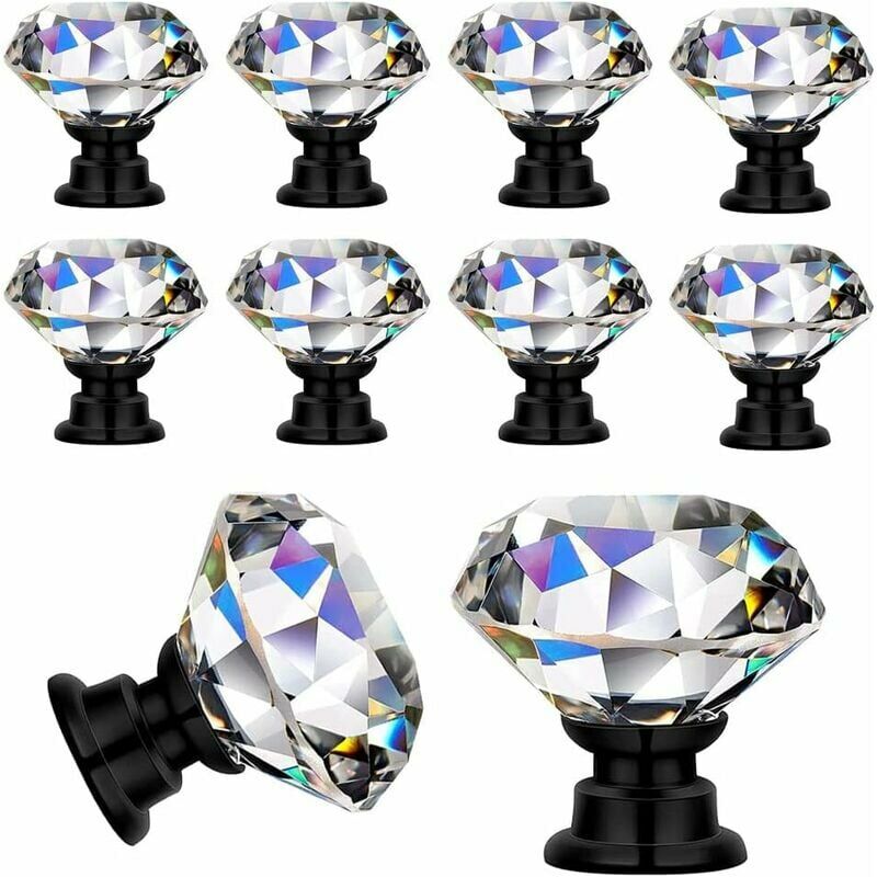 Diametro 30 mm, materiale: realizzato in zinco e cristallo, molto artistico e resistente. Il tuo cottage o l'arredamento chic della tua casa e benefici dall'aggiunta di questi pomelli in vetro scintillante. La mano pomelli in vetro gioiello tagliato come sfaccettature più riflettenti, i pomelli per cassetti in cristallo perfetti sono perfetti per il tuo arredamento chic. p>Il pacchetto include: 10 viti per manico diamantate × 10.