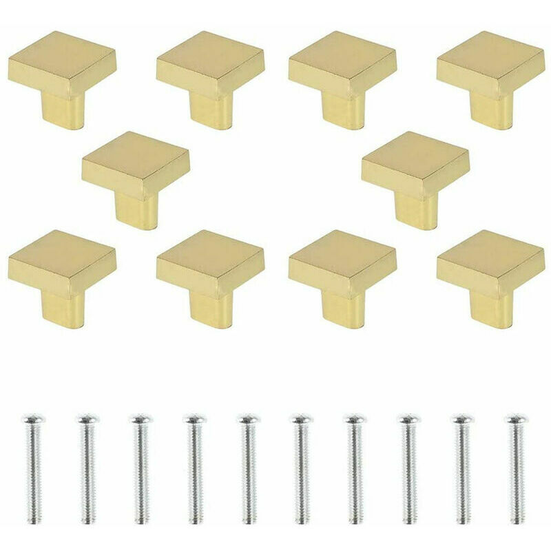 Colore: oro Materiale: lega di zinco Lunghezza: 25 mm Larghezza: 25 mm Altezza: 25 mm Contenuto della confezione: 10 × maniglie, 10 × viti •La manopola del cassetto è realizzata in lega di zinco, solida e resistente. •Il pulsante quadrato è pieno di modernità ed esprime il tuo gusto unico. •Adatto per armadi, cassettiere, cassetti e altri mobili. •Le viti di montaggio sono incluse per una facile installazione.