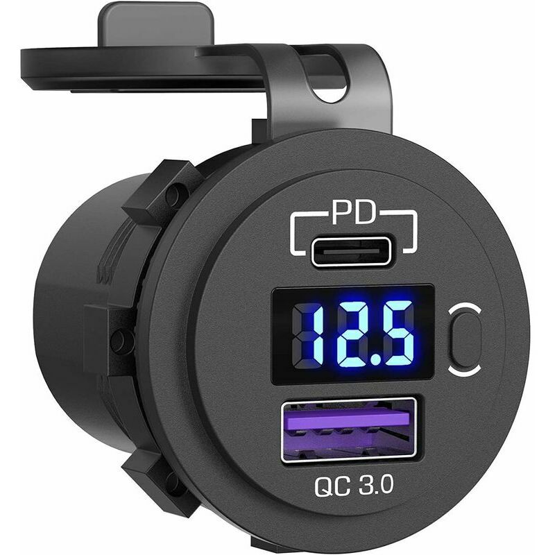 Ricarica rapida PD3.0 - : la porta USB-C Power Delivery 3.0 fornisce 30 W di alimentazione per iPhone 12/Mini/Pro/Pro Max/11/Pro/Max, iPhone X/XS/XR/8/8 Plus/ SE, iPad, AirPods, Galaxy S10+/S9+/S8+. Da 0% a 50% a velocità 3X in 30 minuti. (Per la ricarica rapida dell'iPhone: è necessario utilizzare il cavo USB C TO LIGHTNING.) 【Porta di ricarica rapida 3.0】: potenza massima a 18 W. Fornisce una velocità di ricarica 4 volte superiore ai dispositivi compatibili. In grado di caricare dispositivi compatibili fino all'80% in soli 35 minuti. Completamente retrocompatibile con tutte le versioni di Quick Charge. 【Interruttore On/Off】 : Questa presa USB da 12 V ha un interruttore on/off, che può impedire l'uscita di corrente, risparmiare energia, evitare che la batteria si scarichi quando oziare. Anche con voltmetro LED per monitorare la batteria della tua auto in tempo. 【Sicurezza efficace】 : Chip IC intelligente integrato. Proteggere il dispositivo da sovratensione, surriscaldamento