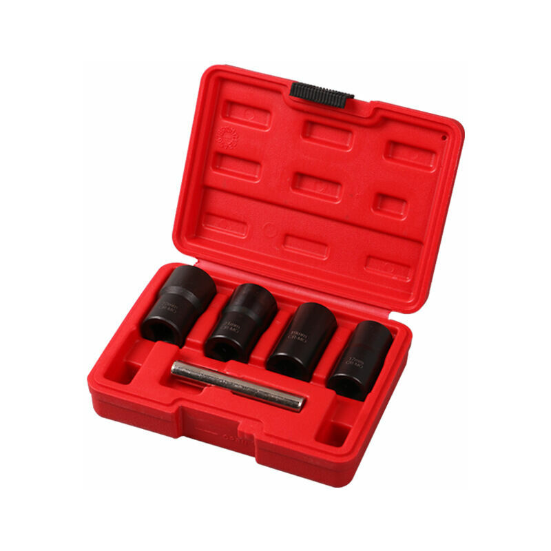 Facile da usare: devi solo usare un martello per colpire lo strumento di rimozione sul dado danneggiato, quindi selezionare la chiave a bussola quadra da 1/2" per allentare il dado in senso antiorario per rimuovere quei dadi arrugginiti. Impugnatura e punta strette: il design della filettatura interna a forma di prugna fornisce una coppia eccellente e può ruotare i dispositivi di fissaggio dei chiodi profondi. La parete concava non liscia all'interno è più favorevole alla presa del dado ostinato e facile da rimuovere. Superbo processo di produzione: il giradadi danneggiato è realizzato in acciaio ad alto tenore di carbonio (acciaio al cromo-molibdeno). Ogni superficie è rivestita con un rivestimento di ossido nero progettato per aumentare la forza e la durata e fornire resistenza alla corrosione. Multiuso: 17 mm, 19 mm, 21 mm e 22 mm, quattro estrattori di dadi di diverse dimensioni e un'asta di metallo extra per soddisfare le diverse esigenze abituali, che si tratti di riparazione