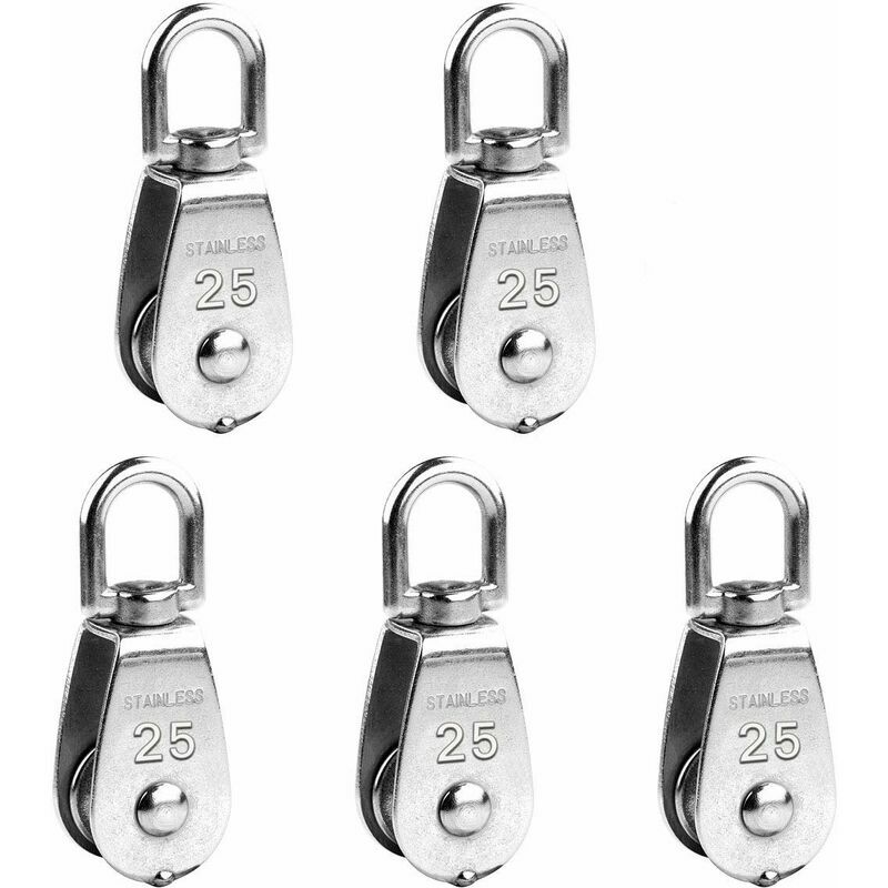 Puleggia singola M25 da 5 pezzi realizzata con materiale in acciaio inossidabile 304 per un uso durevole e duraturo. antiruggine e anticorrosione con funzione di scorrimento regolareSpecifiche - Colore: argento - Materiale: acciaio inossidabile 304 - Dimensioni: circa 83 x 30 x 20 mm / 3,3 x 1,2 x 0,5 pollici (L * W * H) - Capacità di carico massima: 150 kg - Quantità: 5 pezzi - Antiruggine e resistenza all'usura con struttura super resistente - Rotazione di 360 gradi Contenuto della confezione 5 rulli puleggia (M25)