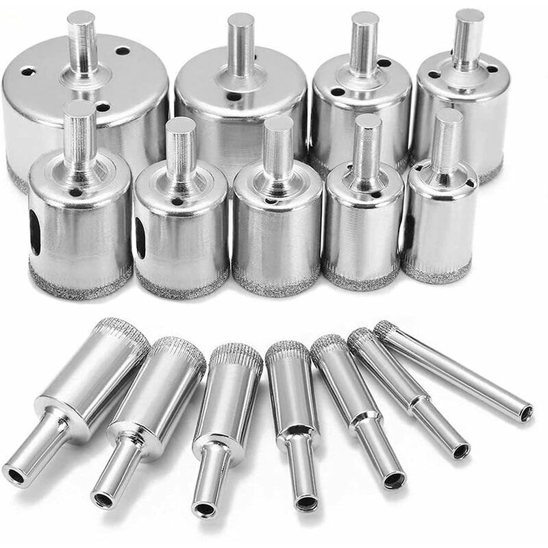 il rivestimento diamantato addensato sulla parte superiore può fornire un'eccellente forza di taglio per ottenere il massimo effetto di perforazione mm, 10 mm, 12 mm, 14 mm, 16 mm, 18 mm, 20 mm, 22 mm, 25 mm, 28 mm, 30 mm, 35 mm, 40 mm, 45 mm, 50 mm. Marcatura laser, la dimensione sarà più chiara rispetto ad altre dimensioni e non facile da indossare. Applicazione: adatto per praticare fori su vetro, marmo, piastrelle di ceramica, vasi a blocchi, vasi, piastrelle in fibra di vetro, marmo ardesia, leggero granito, ecc. Verrà utilizzato con tutti i trapani elettrici e trapani a percussione. Apertura del foro laterale e marcatura laser - Design del foro laterale, la punta del trapano può eliminare gli