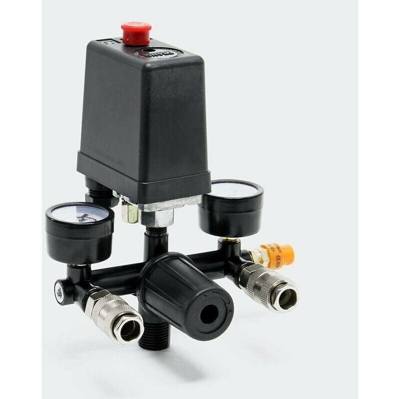 Chiunque necessiti di una pressione inferiore a quella indicata nella riga principale può fare affidamento su questo regolatore di pressione. Il regolatore di pressione può ridurre la pressione di linea alla pressione di esercizio desiderata e mantenerla costante. Per questa sua caratteristica il regolatore di pressione viene anche chiamato riduttore di pressione. I regolatori di pressione sono la soluzione ideale, soprattutto quando le parti incorporate hanno una resistenza alla compressione limitata. Questo regolatore di pressione convince con la sua connessione filettata esterna da 20,67 mm, 2 display di misurazione o manometri, 2 raccordi rapidi per aria compressa e una valvola di sicurezza. Quindi hai un'unità di aria compressa completa con tutto ciò di cui hai bisogno. Il regolatore di pressione ha un display di pressione da 0 a 12 bar. La tensione massima di esercizio è 240 V / 16 A e la pressione massima consentita è 8 bar.