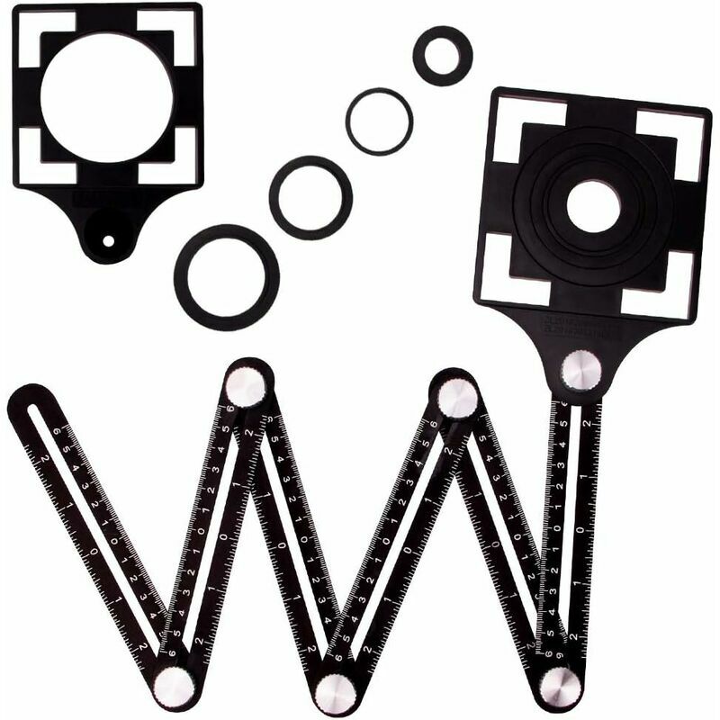 Potente funzione di trapanazione - Questo righello di misurazione multi-angolo con apertura di posizionamento a 5 fori , I diametri dei modelli a 5 fori: 25/40/45/55/75 mm. 【 Facile da leggere e da usare: posiziona semplicemente lo strumento jig angolare sulla tua area di lavoro, fai scorrere il righello nella forma desiderata e stringi i bulloni. Ottimo strumento portatile, facile da piegare, poco ingombrante e facile da riporre. Operazione con una sola mano con un meccanismo di fissaggio unico. Basta regolare le 6 manopole in metallo per creare la forma desiderata esattamente come un righello fai-da-te. 【Alluminio da 3 mm con incisione laser】 Metallo in lega di alluminio puro da 3 mm progettato per questi strumenti multi-righello, resistente e mai arrugginito. Graduazioni di misurazione del righello incise al laser ad alta visibilità e precisione, non facili da indossare e strappare. Dotato di bottoni in metallo. tagli a piombo e qualsiasi progetto a cui puoi pensare, funziona alla