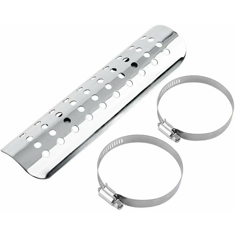 Prestazioni elevate - - Lo scudo di isolamento termico del tubo di scarico può proteggerti da ustioni e ustioni, garantendo al contempo la sicurezza. Con costruzione razionale e design professionale del foro radiante, perfetto per la dissipazione del calore della marmitta di scarico e per prolungare la durata del sistema di scarico. 【Montaggio universale】 - Lo scudo termico della marmitta universale è adatto per la maggior parte delle moto, moto con 50 -70 mm di diametro del tubo di scarico, come elicotteri, incrociatori, ecc. 【【Perfetto per la decorazione】 - Il nostro scudo termico per tubo marmitta con aspetto metallico lucido, design semplice con stile forato e motivo dritto, fresco ed elegante parti, dona un nuovo look alla tua moto < p> 【Scudo termico in metallo】 - Copri scudo marmitta zincato con materiale in acciaio inossidabile di alta qualità. Solido corpo in acciaio e metallo, resistente alle alte temperature, resistente alla corrosione e durevole, può essere utilizzato a