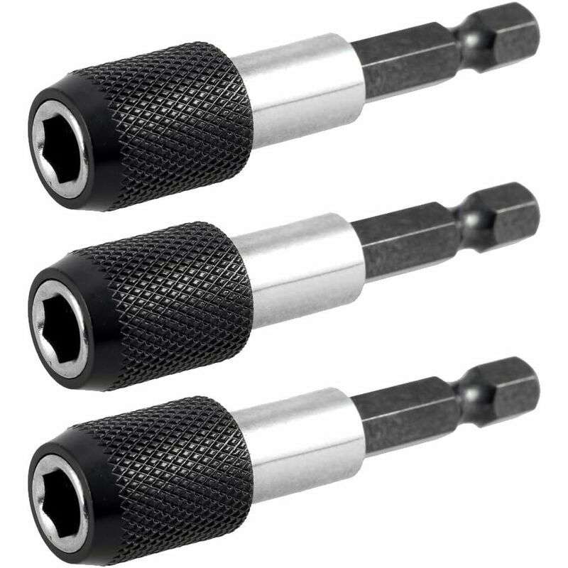 una punta da trapano, afferrare il mandrino nero con la mano e spingere il gambo esagonale di un'altra mano, quindi la punta di connessione può essere estratta. Caratteristica: Adatto per trapano, cacciavite, testa batch e altro per il trasferimento. Estensione di tutti tipi di punte per cacciavite, utilizzo della conversione della testa del cacciavite. Sgancio rapido magnetico, veloce e veloce migliorerà notevolmente l'efficienza del lavoro.Forte magnetismo, limita la posizione n del cacciavite e regolabile.La confezione include: 3 supporti magnetici per