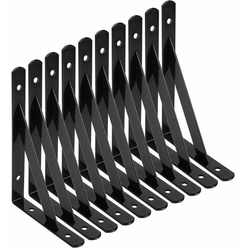 Il pacchetto include -- Confezione da 10 staffe per mensole nere resistenti da 150 x 95 mm per mensole decorate per la casa fai-da-te Alta qualità -- Le staffe per mensole triangolari sono realizzate in acciaio di alta qualità, antiruggine e resistente alla corrosione, garantisce durata e stabilità Dimensioni -- Staffa per mensola a muro: 150 x 95 mm/5,90 x 3,74 pollici;