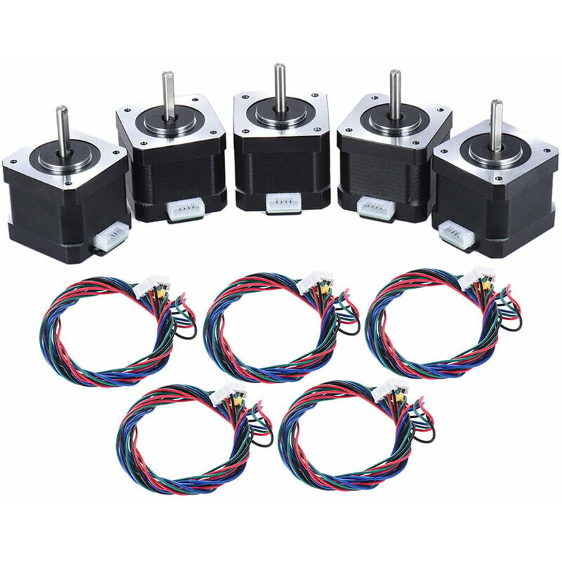Il popolare motore passo-passo Nema 17,< br/> Presenta un angolo di passo di 1,8 gradi, 2 gradini, che consente una coppia di tenuta di 0,4 Nm 5 pezzi in una serie. Dimensioni dell'immagine: 42*42*38 mm.Caratteristica:Applicare per stampante 3D, macchinari e attrezzature.Angolo di passo di 1,8 gradi, mantenimento della coppia di passo di 0,4NM. Dimensioni del motore: 42*42*38 mm. Riduzione del rumore e la temperatura di funzionamento. 5 pezzi in un set, viene fornito con 5 pezzi di cavi (90 cm). Caratteristiche: Materiale: metallo Angolo di passo: 1,8 gradi Fase 2 Tensione: 3,96 V Corrente: 0,9 A Coppia: 0,4 Nm Cavo: 4 Lunghezza cavo: 90 cm/35,4 pollici /> Dimensioni telaio singolo: 42,3 * 42,3 * 38 mm Diametro albero: 5 mm Quantità: 5 pezzi Peso articolo: 1356 g/47,8 once Dimensioni confezione: 28 * 18 * 13 cm / 11 * 7.1 * 5.1in Peso del pacchetto: 1760g / 3.9lbs Elenco dei pacchetti: 5 * Motore passo-passo 5 * Cavo di alimentazione