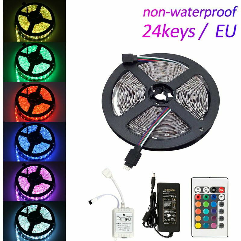 Questa luce RGB può essere utilizzata per decorare la TV, il tavolo dell'ufficio, la sala da pranzo, la camera da letto, la cucina, il giardino d'inverno e i salotti, in particolare adatto per vacanze ed eventi come Natale, Halloween, San Valentino, club per matrimoni, feste e altro ancora. È un regalo perfetto per la tua famiglia e i tuoi amici. Caratteristiche: 60 LED per metro, 300 LED totalmente in più colori illuminati in diversi modi. Basso DC 12V sicuro e tensione affidabile, garantisce la sicurezza della tua famiglia.Controllato da un telecomando IR sensibile entro 5-8 metri, funzionamento semplice.Puoi scegliere tra un'ampia gamma di colori vivaci e modalità di controllo remoto. Tagliabile lungo il giallo la linea segna ogni 3 LED, non influirà sulla sua illuminazione. Nastri biadesivi, è possibile applicare facilmente superfici asciutte e pulite. letto, divano, specchio, scale per l'illuminazione d'atmosfera.E luce decorativa perfetta per vacanze, feste, mostre e altro