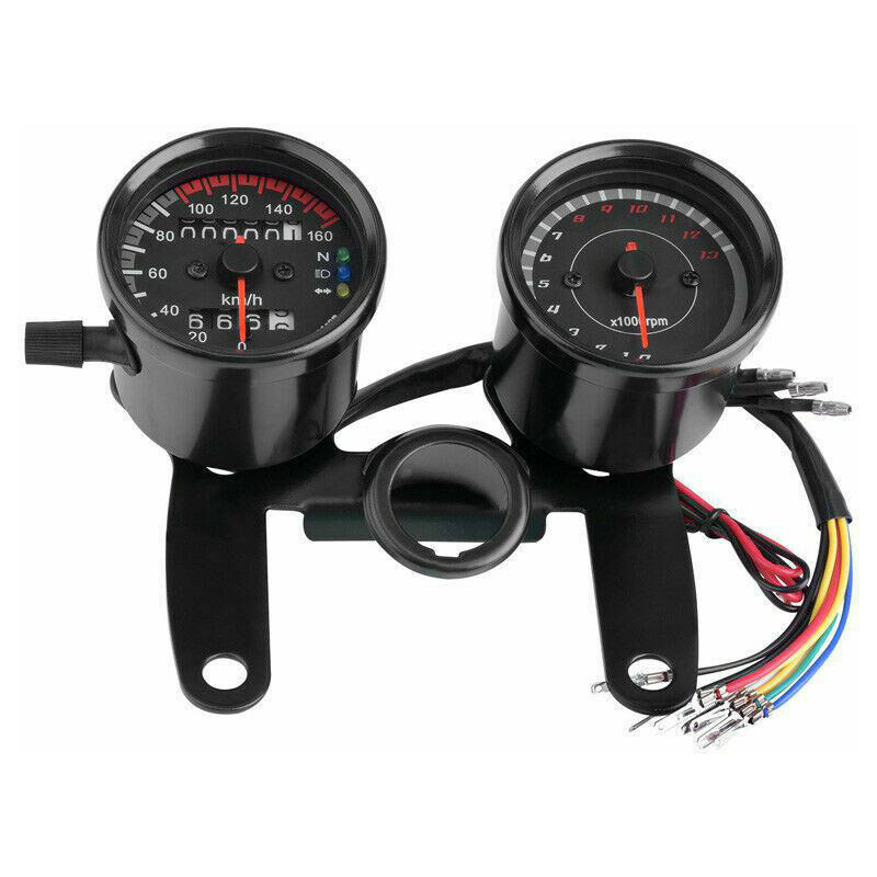 Specifica: Condizione: 100% nuovo di zecca Tipo di elemento: tachimetro moto Materiale: metallo Colore: come mostrato nell'immagine Applicazione: universale Distanza del foro di montaggio: ca. 10 cm / 3,9 pollici Elenco dei pacchetti: 1 x contagiri 1 x contachilometri 1 x staffa