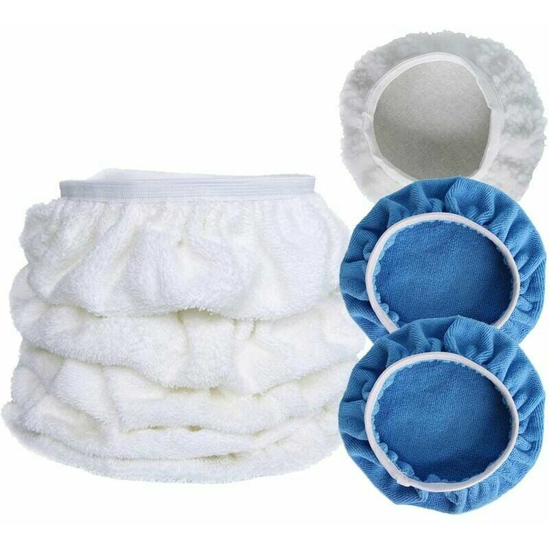 Adatto a tutti i tipi di lucidatura per auto, legno massello, pietra. Alta densità, durezza è adatta, durevole. Regola la cera con il cordoncino, regolabile tenuta. Uso: applicare su un lucidatore per auto da 9 pollici o 10" Utilizzato principalmente per tutti i tipi di mobili, automotive, metallo, bronzo, verniciatura del legno, architettura d'interni, utensili da cucina avanzati, strumenti musicali come il processo di lucidatura finale, utilizzato specialmente per la superficie e parte di lucidatura Confezione da 2 Tonnellate di lucidatura in microfibra (colore blu). Confezione da 4 pezzi di rivestimento protettivo in spugna (bianco). 1 rivestimento lucidante in lana non tessuta (colore bianco).