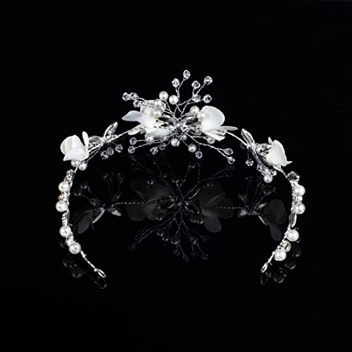 VOLLGUFEN Fiore bianco Farfalla Cristallo Fascia Tiara Cristallo Principessa Strass Ornamento per capelli Ragazze e Neonate